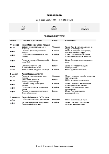 Она интегрируется поверх задач в чатах Битрикс24 и превращает встречи в управленческие раунды, где